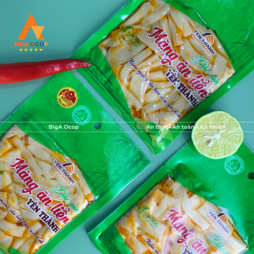 Măng ăn liền Yên Thành là một đặc sản OCOP 3 sao đến từ Yên Bái, được sản xuất bởi Công ty Cổ phần Yên Thành tại huyện Yên Bình. Sản phẩm nổi bật với hương vị tự nhiên, dai giòn của giống măng tre rừng Bát Độ, trải qua quy trình sản xuất nghiêm ngặt và không sử dụng chất bảo quản. Măng được lên men tự nhiên, sử dụng men vi sinh Nhật Bản để giữ hương vị thơm ngon và đảm bảo độ an toàn cao cho sức khỏe người tiêu dùng.