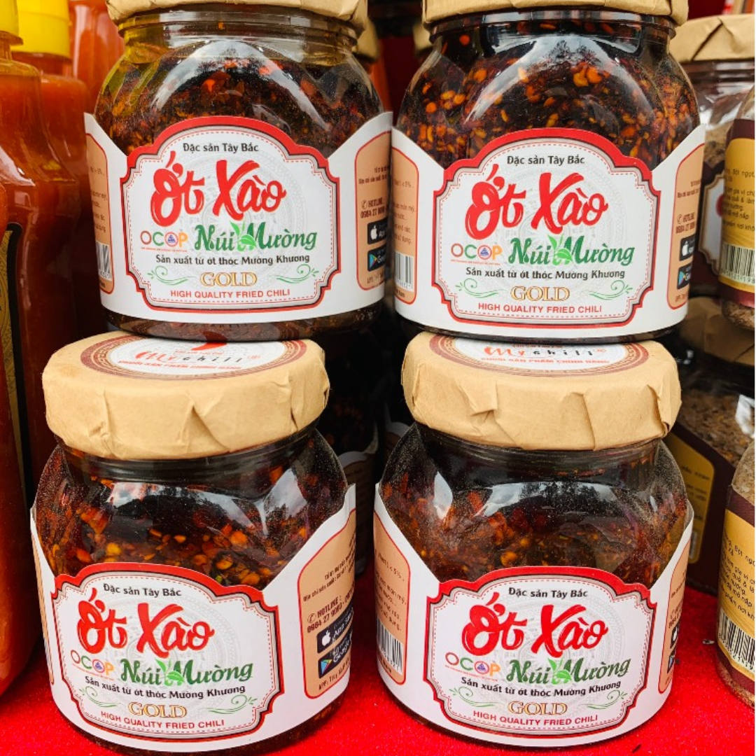 Ớt Xào Núi Mường OCOP 3 sao Lào Cai – Món ngon truyền thống của đồng bào Mường vùng núi Lào Cai, đạt chuẩn OCOP. Làm từ ớt tươi địa phương xào/om kỹ với thính gạo nếp/nương, mắc khén, gia vị. Đặc trưng bởi vị cay ấm dịu, thơm nức mùi thính, bùi béo đậm đà, the the tê nhẹ từ mắc khén. Là món ăn kèm (mặn) đưa cơm hoặc dùng với xôi nóng, mang đậm hồn cốt ẩm thực núi rừng.